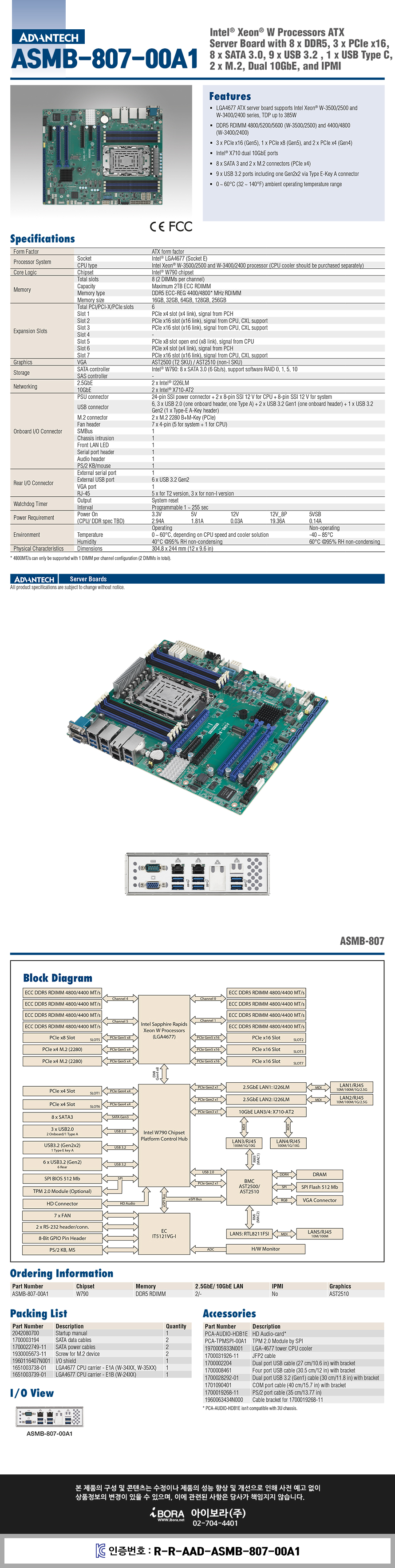 Intel Xeon W Processors ATX Server Board with 8 x DDR5, 3 x PCle x16, 8 SATA 3.0, 9 x USB 3.2, 1 x USB Type C, 2 x M.2, Dual 10GbE, and IPMI