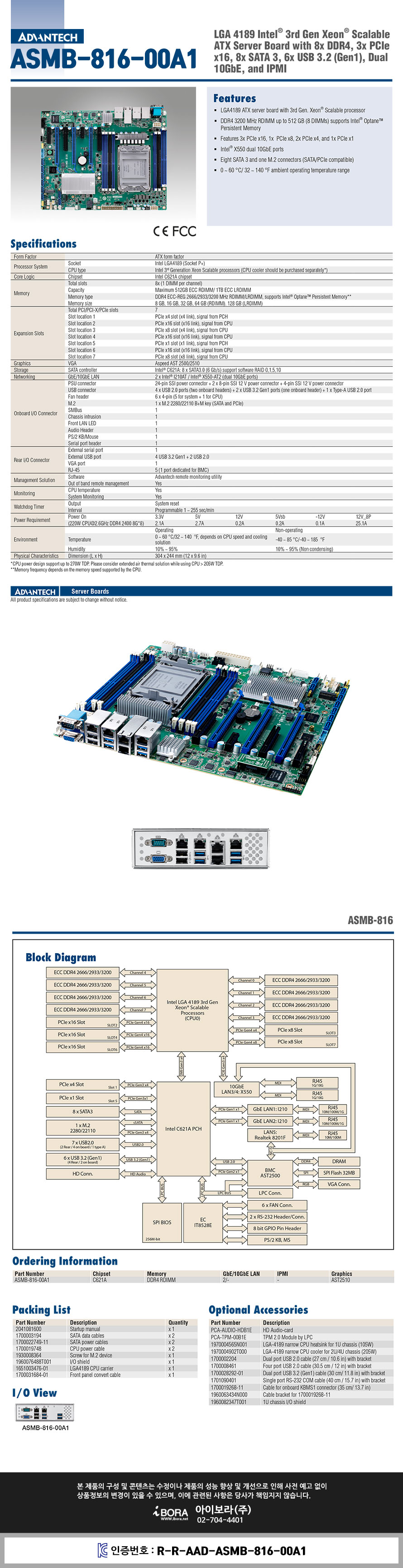 LGA 4189 Intel 3rd Gen Xeon Scalable ATX Server Board with 8x DDR4, 3x PCle x16, 8x SATA 3, 6x USB 3.2 (Gen1), Dual 10GbE, and IPMI