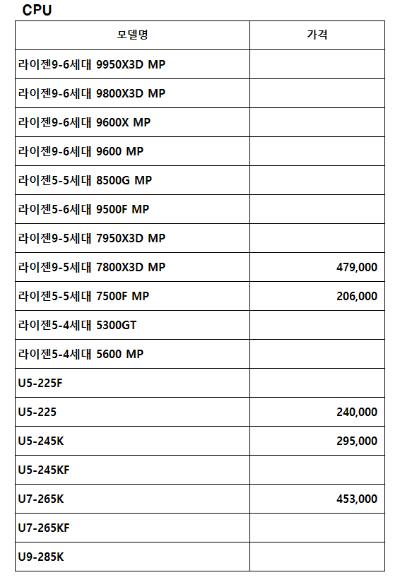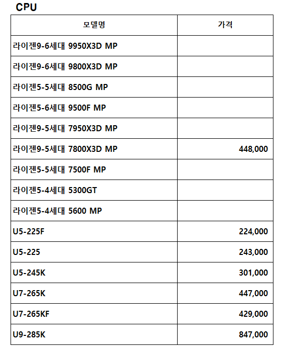 가격표의 가격은 수시로 변경될 수 있으니 주문 시 확인하시기 바랍니다.