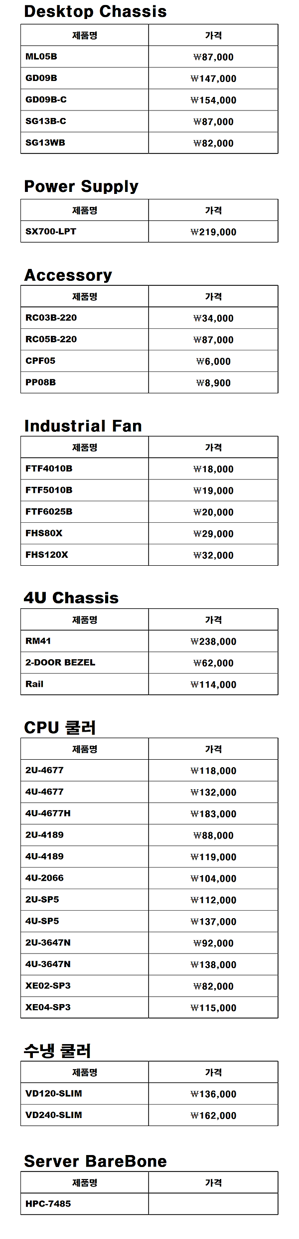 가격표의 가격은 수시로 변경될 수 있으니 주문 시 확인하시기 바랍니다.
