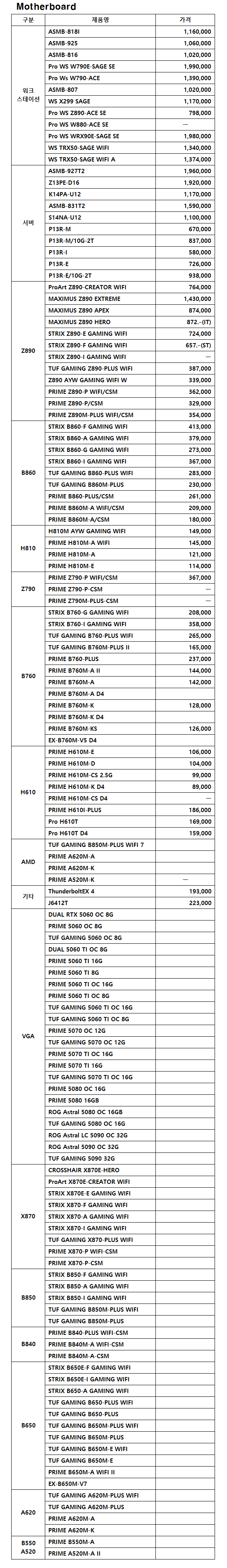 가격표의 가격은 수시로 변경될 수 있으니 주문 시 확인하시기 바랍니다.