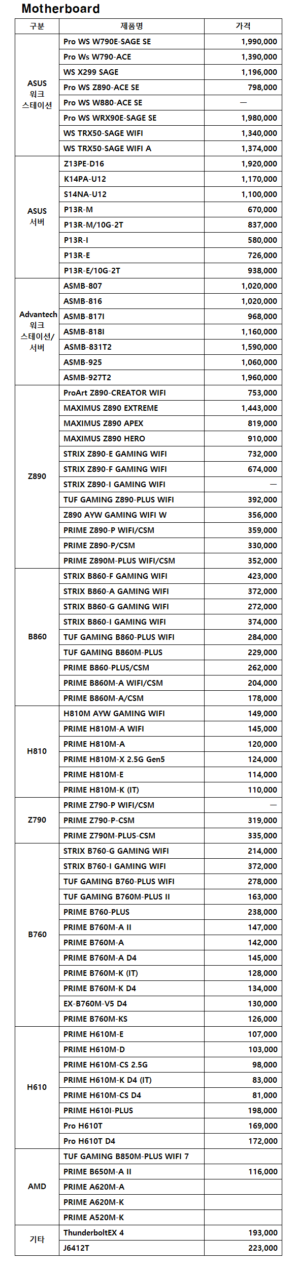 ASUS 가격표